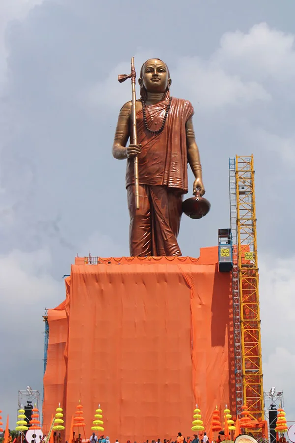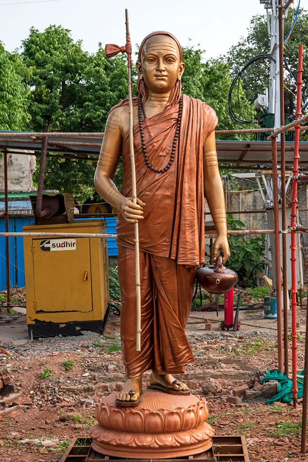 12,5 metre yüksekliğinde ve 85 ton ağırlığındaki bu bronz heykelin döküm süreci, modern metal işçiliğinin bir örneğidir. Jiangxi Eyaletindeki Tongqing ekibi, heykeli ayrı döküm için 37 modüle ayırmak için "bölümlü döküm + genel kaynak" teknolojisini kullandı ve ardından bir lazer konumlandırma sistemi aracılığıyla milimetre seviyesinde yerleştirme elde etti. Bunların arasında, Shankara'nın elinde tuttuğu Vedanta Sutra modeli sadece 3 mm inceliğindedir, ancak yüzeye 2.000'den fazla Sanskritçe yazıtın kazınması gerekir. Ekip tarafından bağımsız olarak geliştirilen "mikro oyma elektrolitik kazıma yöntemi" teknik darboğazı başarıyla aştı.