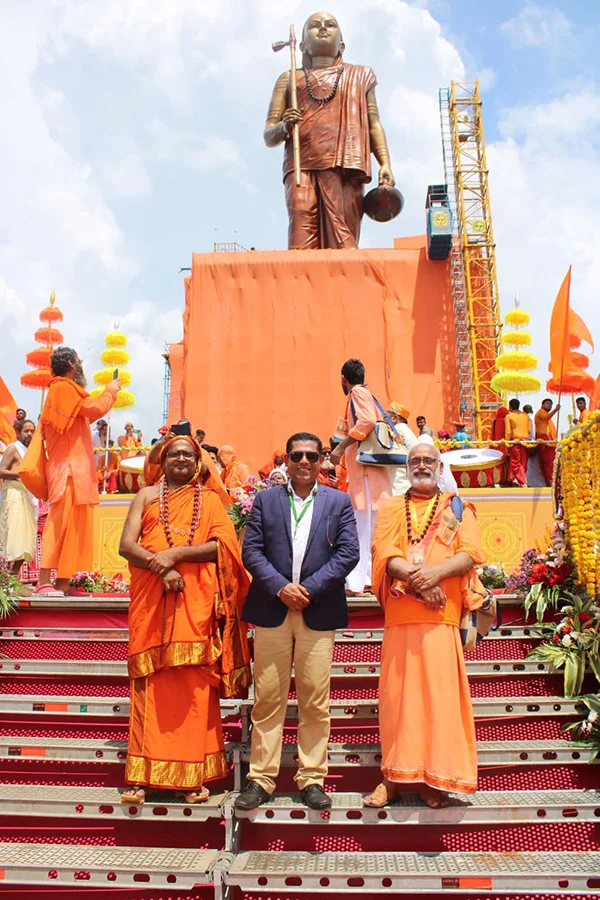 Heykelin kurulumu sırasında Jiangxi Tongqing ekibi ikili bir zorlukla karşı karşıyaydı: yapının güvenliğini sağlamak ve onu Hindu ritüel normlarına entegre etmek. Bu amaçla, mühendislik ekibi heykelin göğüs kısmında çıkarılabilir bir sunak ayırmak için özel olarak bir "modüler kaldırma sistemi" tasarladı; bu sistem yalnızca inananların çiçek sunma ve ibadet etme ihtiyaçlarını karşılamakla kalmıyor, aynı zamanda genel yapıya zarar gelmesini de önlüyor. 2023'te heykelin açılış töreninde, Hindu rahibi Ganj'ın kutsal suyunu heykele serptiğinde, kaidede saklı su püskürtme cihazı aynı anda çalıştırıldı ve su sisi heykelin kıyafetlerinin kıvrımları boyunca yavaşça aktı. Bu "mucize" sahnesi sahnedeki on binlerce inananı hayrete düşürdü.